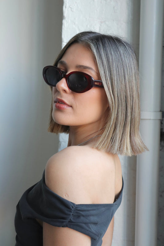 Azrou - Burgundy Grey Round Sunglasses